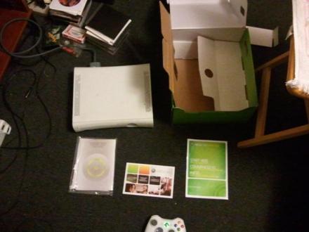 The process of replacing everything has begun – I got the last real Arcade from Wal-Mart – with no power supply or game and the box itself looks scuffed up. I think I can load the pictures… this is minutes after opening and trying to assemble the X-Box: