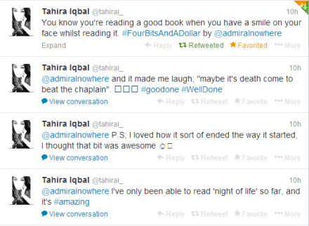 I can now say that I am an internationally known writer…without laughing… and oh, yeah—I’m on Twitter, too: @admiralnowhere