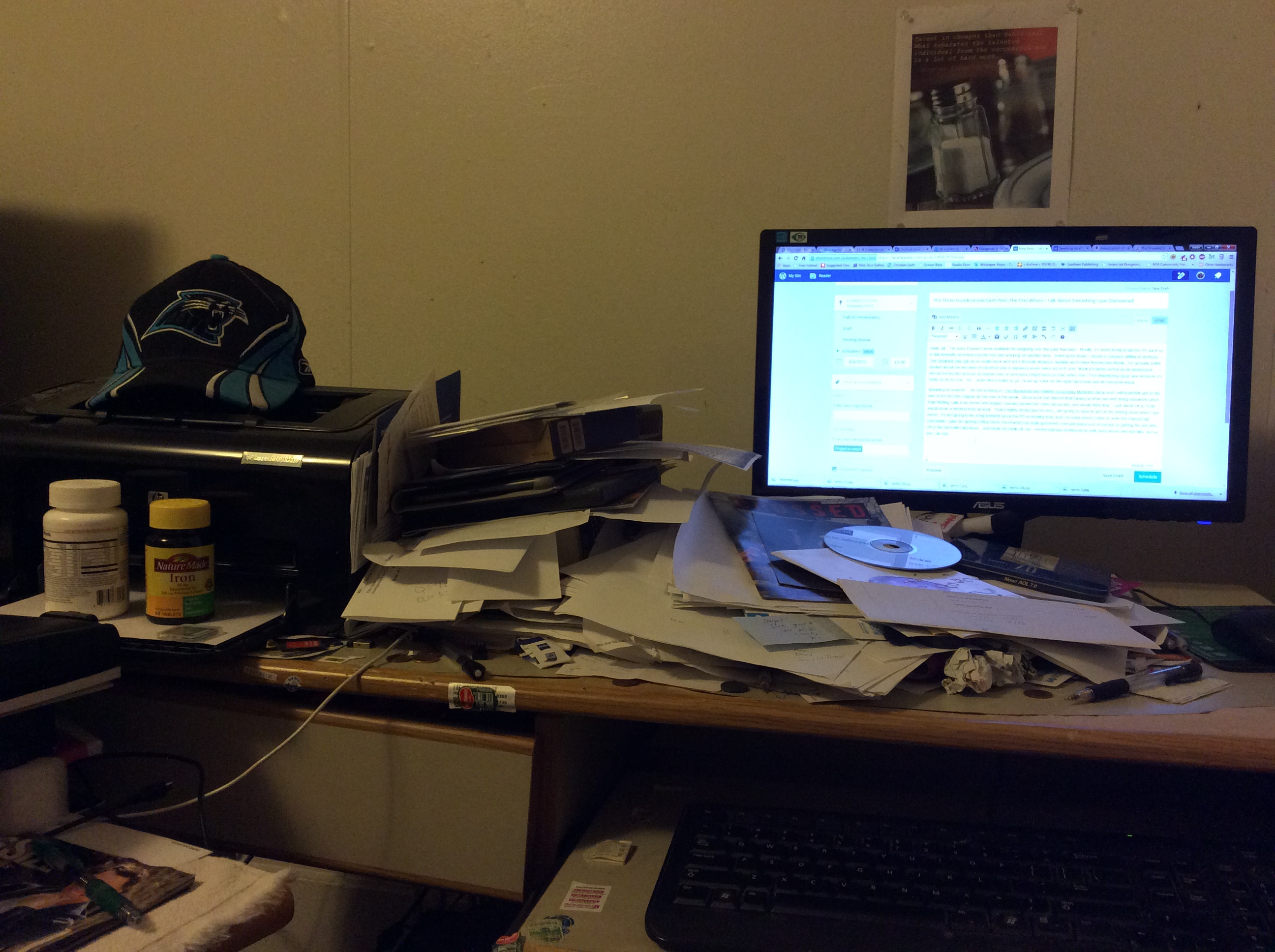 Speaking of projects – I’m still working on The Marvelous and Malefic Doomsday Medicine Show and I will hopefully get to the end of the second chapter by the end of the week. Since work has figured that having an iPad out and doing real work rather than fielding calls is for some odd reason ‘counter-productive’ (don’t know why one would think that. I get about 1K to 1500 words done a session here at work. That’s highly productive for me), I am going to have to get all the writing done when I get home. It’s not going to be a big problem since the PC is running now, and I’m using Word Online to write the manuscript. Eventually, I plan on getting Office Word, Excel and One Note (provided I can get some sort of traction in getting the lost info off of the old main hard drive…and clean my desk off, too. I know that has nothing to do with hard drives and lost files, but as you can see: