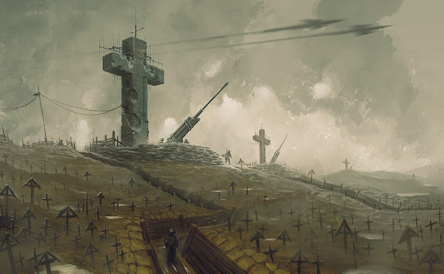Trench Crusades combines the dirt, muck and mire of World War One with the religious fantasy that permeates Warhammer 40,000. The official game is not out yet. The Kickstarter is getting organized, and I hope it doesn’t start up after GenCon just because I want to throw some money down on it. I just signed onto the mailing list and have been devouring the lore as often as I can.